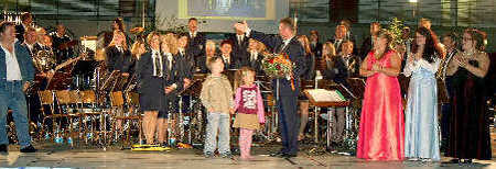 Die Klasse und Präzision der Stadtkapelle zeigte sich auch in einen Stück über die Strände von Rio, die gleichzeitig auf einer Leinwand gezeigt wurden, und bei dem Robbie Williams-Stück "Swing when you´re winning". Als Gesangssolisten überzeugte Harald Schmieder: alleine, mit seiner Tochter Anja und mit zwei Töchtern Anja und Regina.