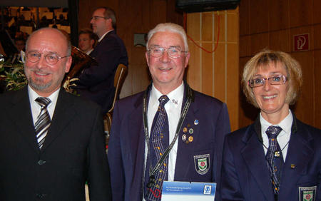 Mit zwei stürmisch geforderten Zugaben, darunter ein Michael Jackson-Medley als Vorgeschmack auf das Comeback des “King of Pop” machten die Musiker dem offiziellen Teil ein Ende. Natürlich wollten sie so schnell wie möglich mit ihrem Jubilar anstoßen - wie sagte die Vorsitzende bei der Ehrung zu Paul Merz: ”Was wären die Nachfeiern ohne dich!” Also wünschten die Kollegen dem bald 82-Jährigen (am 17. April) vor allem Gesundheit.