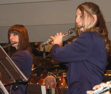 Die Querflöten von Melanie Kindler und Nicole Münch spielten die Hauptrolle bei dem Abstecher in die keltische Mythologie. Die beiden Solistinnen ließen ihre Finger über die Holzblasinstrumente fliegen und entlockten ihnen bezaubernde Töne. Mit einem tosenden Beifall und ersten Bravo-Rufen ging es in die Pause.