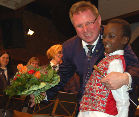 Mit einem Blumenstrauß wurde Dirigent Michael Jerg überrascht.