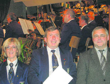 Peter Deininger (Mitte) wurde von Angelika Sedlak und Gerold Löffler für 40 Jahre aktives musizieren geehrt.