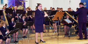 Höhepunkt des ersten Konzertteils war der Auftritt der erst 15-jährigen Regina Schmieder. Sie trug mit atemberaubender Technik das Clarinet Concerto von Philip Sparke vor. Ab und zu wurde ihr Vortrag von der Orchesterwucht überlagert, insgesamt vermochte sich die talentierte Solistin aber immer wieder durchzusetzen, besonders im langsamen zweiten Satz mit anspruchsvoller Kadenz. Auch den dritten Satz im Big Band Sound meisterte die talentierte junge Dame mit Bravour und erhielt lang anhaltenden Beifall.